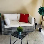Eine komplette Küche wird in diesem Apartment angeboten. Von eine Terrasse aus kann man einen Ausblick auf den Garten genießen.